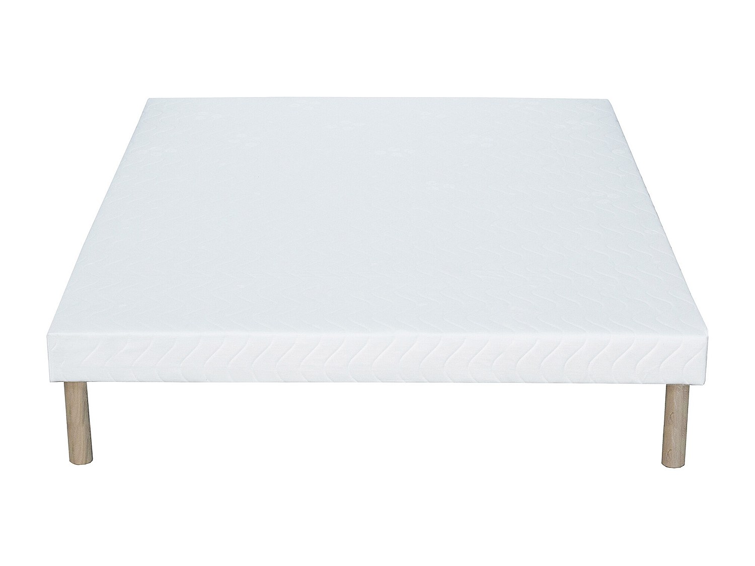 Säng 140 × 190 cm i vit och natur med förvaring i sänggavel och sängbotten med madrass LEANDRE