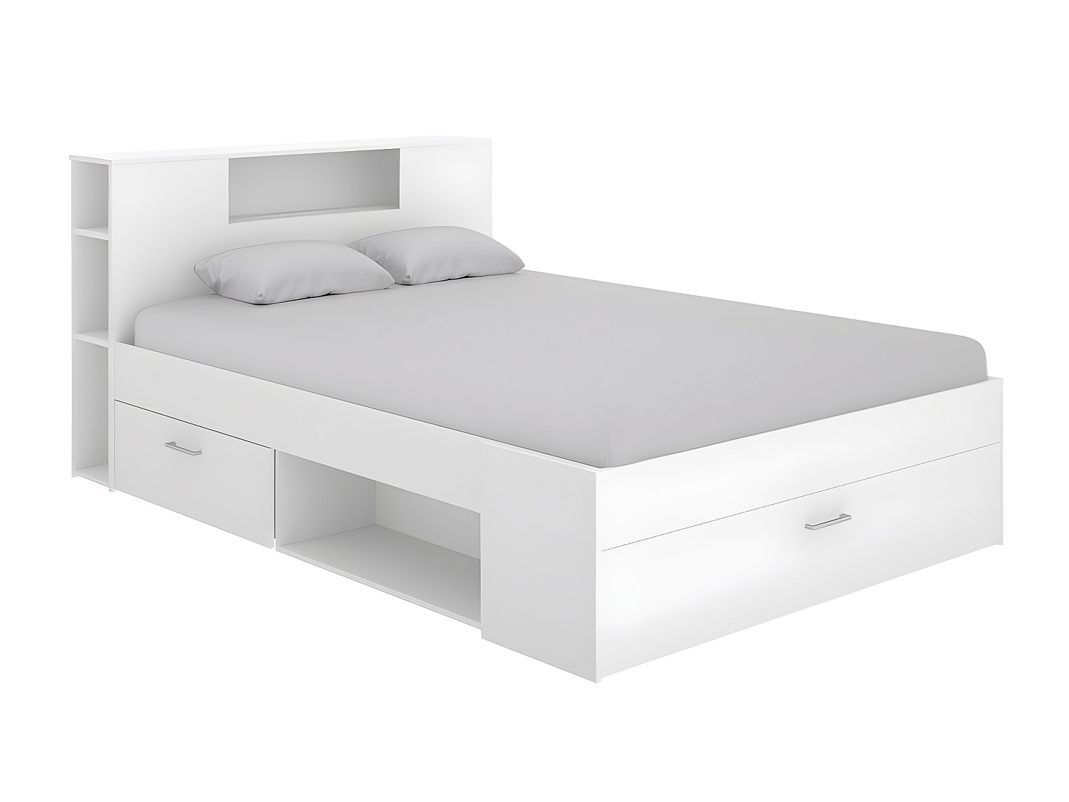 Säng 140 × 190 cm i vit med förvaring i sänggavel och sängbotten med madrass LEANDRE