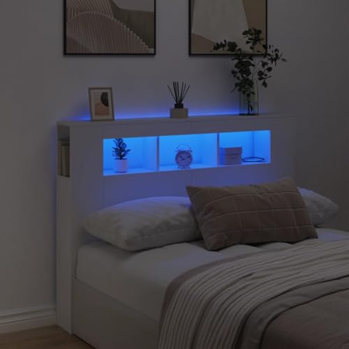 Homgoday LED huvudgavel vit 140 x 18,5 x 103,5 cm konstruerat trä, sänggavel, sänggavel för dubbel/enkel, inomhus hem sovrum möbeltillbehör