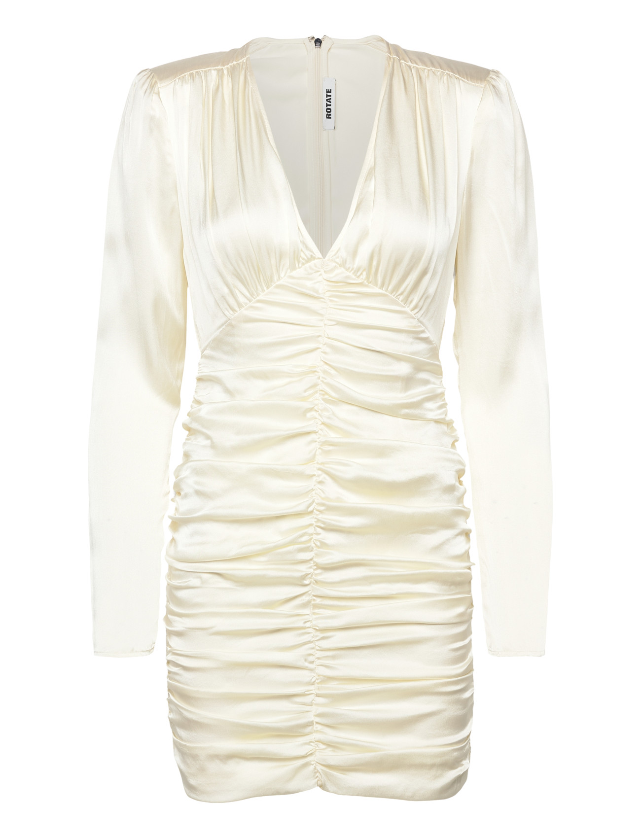 ROTATE Birger Christensen Satin Mini Gathered Dress - White - 42