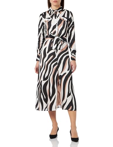 Pinko ASSENTE Tryckt Satin Klänning, Zpz_vit/svart/beige, 36