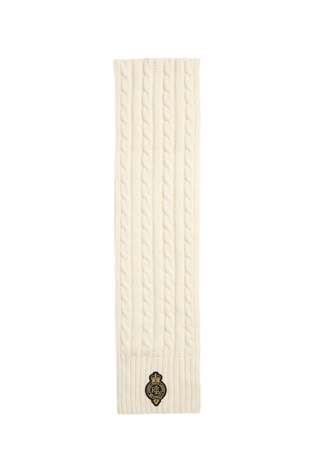 Lauren Ralph Lauren Crest-Patch Cable-Knit Scarf Vit