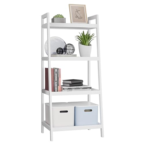 SMIBUY Steghylla, 4-vånings bambu bokhylla, badrumsförvaringsorganisatör växtdisplayställ, fristående öppen hylla med handtag för hemmakontor (vit)