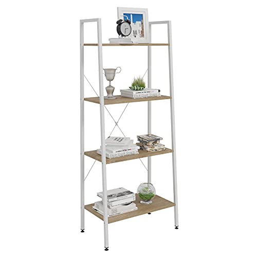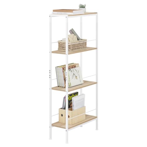 WOLTU stående hylla, steghylla, bokhylla med 4 hyllor, för vardagsrum, sovrumshylla (vit + ljus ek, 60 x 35 x 148 cm)