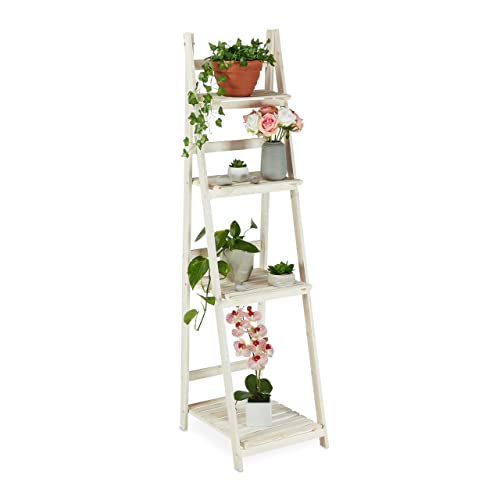 Relaxdays Steghylla, för inomhus och balkong, Shabby-Chic, stående, vikbar, växtstativ, 4 nivåer, vit