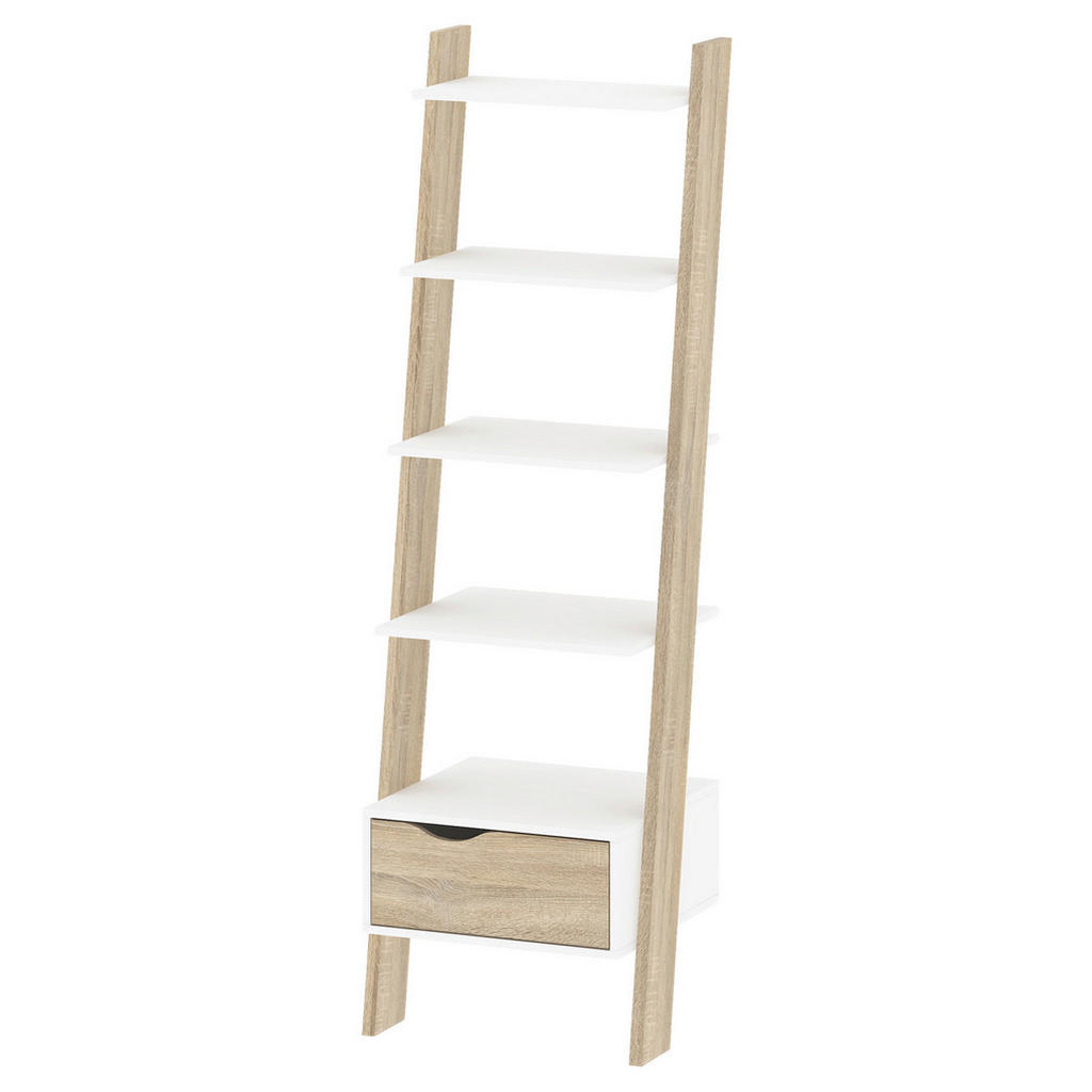 COSTWAY Steghylla med 5 nivåer, stående hylla, bokhylla med metallram, trapphylla, för kontor, kök, vardagsrum, 61 x 30 x 183 cm (vit)
