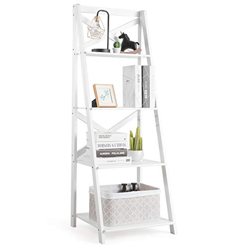 COSTWAY Steghylla med 4 nivåer, bokhylla med X-formad stång, modern steghylla med stort förvaringsutrymme, stående hylla av trä för vardagsrum, sovrum, kök, 50 x 45 x 145 cm (1, vit)