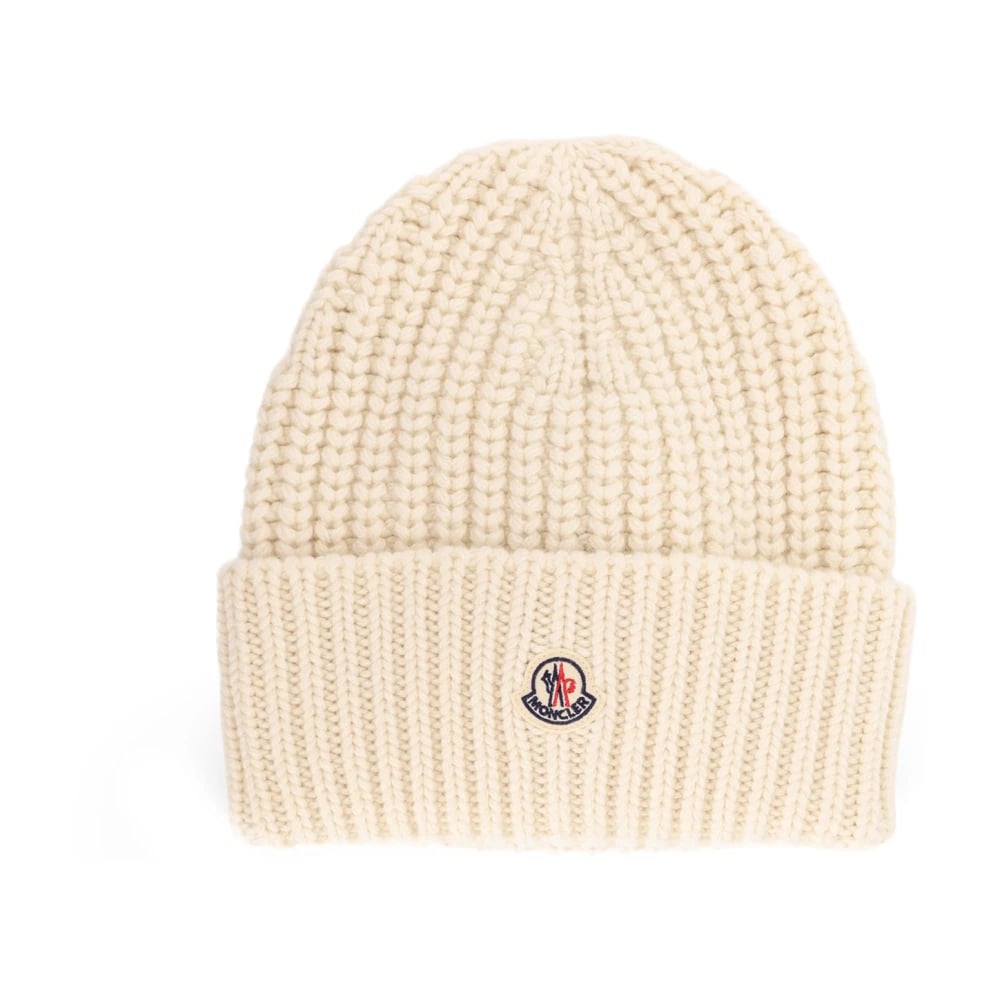 Moncler, Accessoarer , Dam, ONE Size, Kashmir, Vit Stickad Logopatch Mössa
