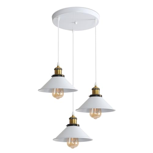 DELIPOP Vintage takkrona, 3 lampor Industrial E27 Retro metall taklampa belysning för sovrum, kök, matsal (30cm bas, vit)
