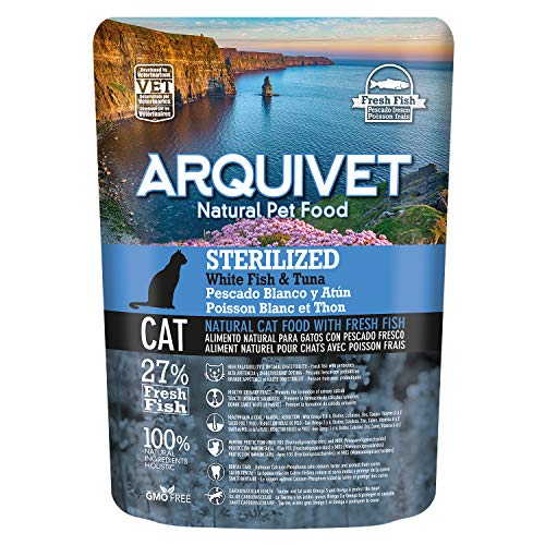 ARQUIVET – förpackning med 8 påsar med färsk vit fisk och tonfisk för steriliserad katt, kattmat, kattmat, kapacitet: 2800 g (350 g x 8 st)