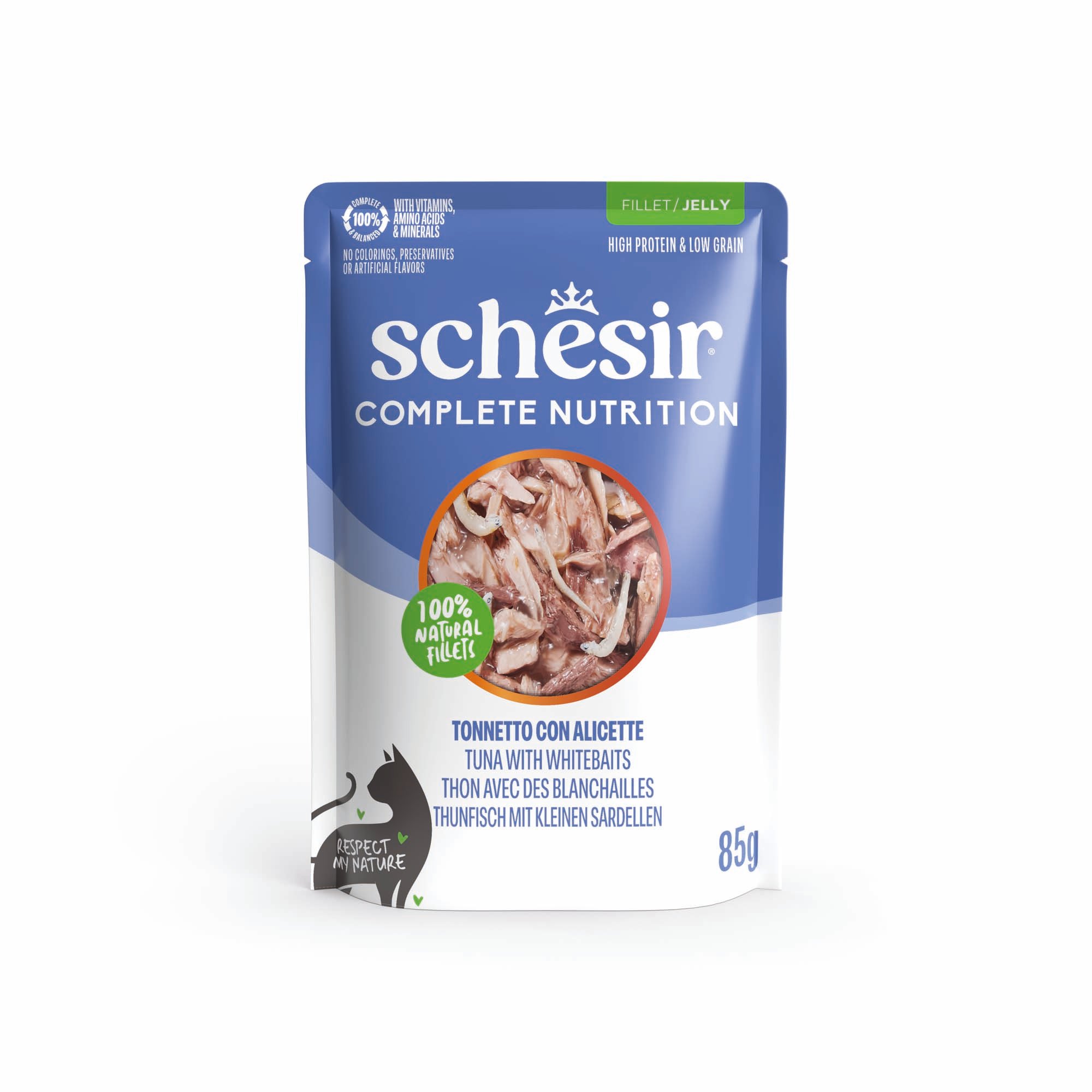 Schesir Complete Nutrition filé i gelé 6 x 85 g - Tonfisk med vit fisk