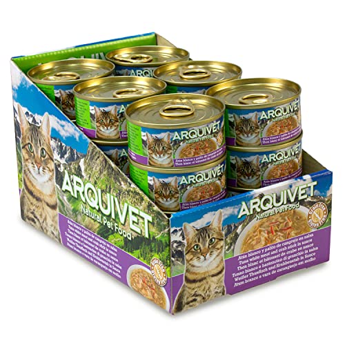 ARQUIVET - Super Premium burkar med vit tonfisk med kyckling i kattsås - Gourmetmat tillagad med 100% naturliga ingredienser - Pack 24 enheter - 80 gr per enhet - våt kattmat