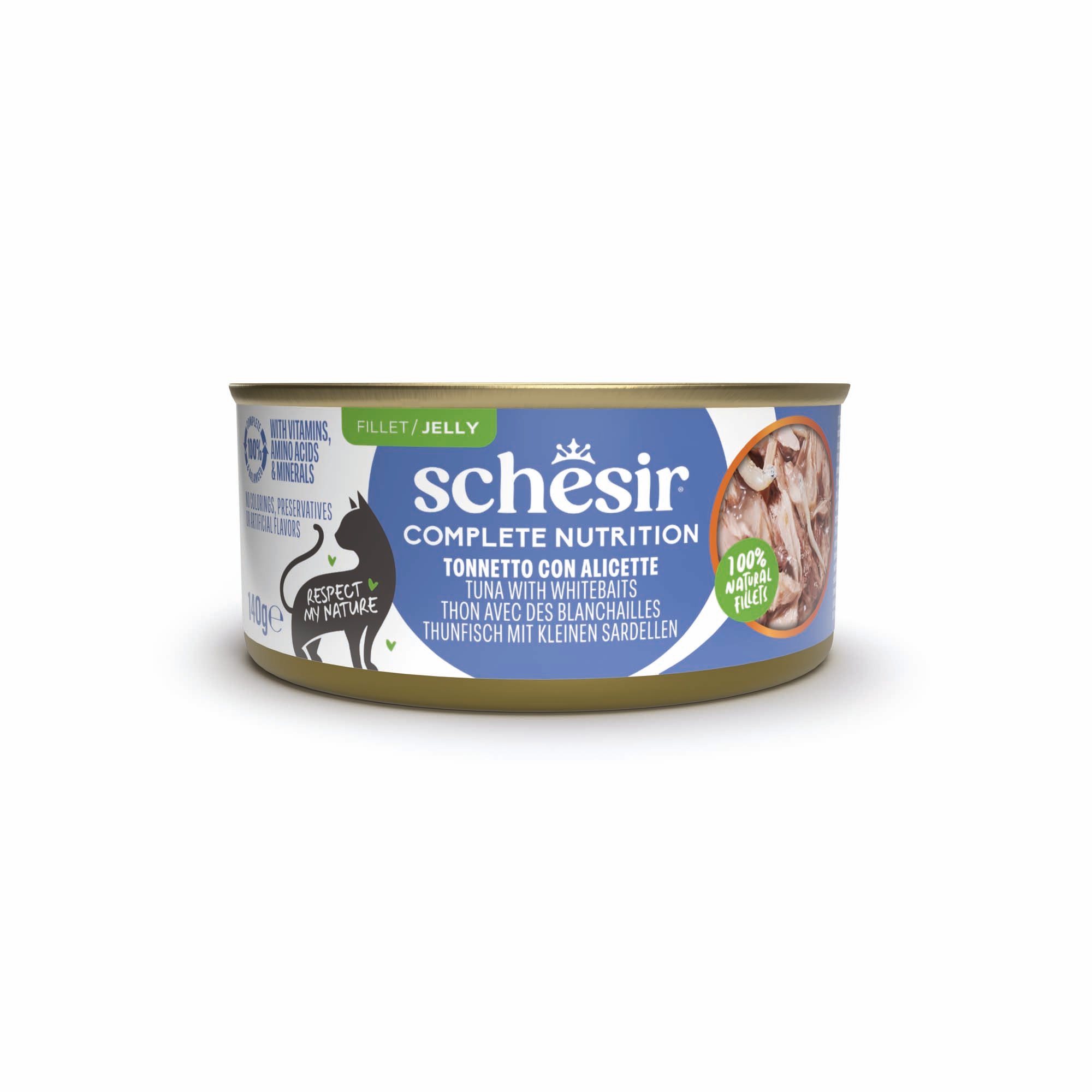 Ekonomipack: Schesir Complete Nutrition filé i gelé 24 x 140 g - Tonfisk med vit fisk