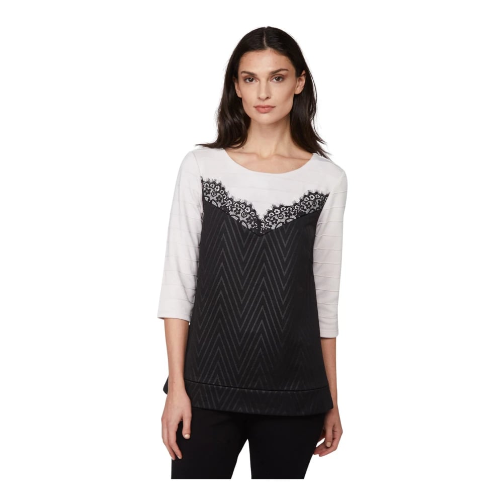 Twinset, Toppar , Dam, S, Bomull, Svart och vit spets topp zigzag