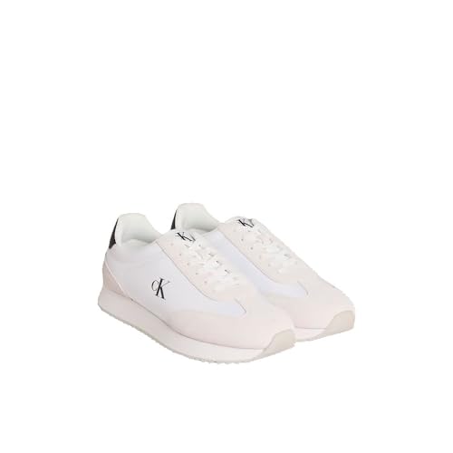 Calvin Klein jeans herr retro löpare spets upp NY-SU YM0YM01325 låg topp, vit (ljus vit/svart), 10 UK, Vit ljus vit svart, 42.5 EU