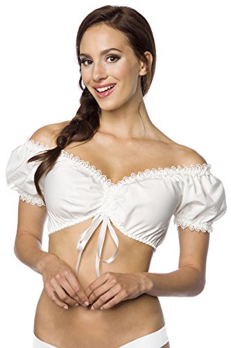 DIRNDLINE Dirndl-blus, blus, dirndl, traditionell blus, traditionell blus, topp, spets, elastiska puffärmar, roliga, oktoberfest, München, folkfest, vit, XS – 3XL, Vit, S