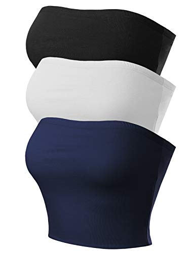 MixMatchy Basic casual axelbandslösa tubtopp för kvinnor, 3-pack - Svart/Vit/Marinblå, M