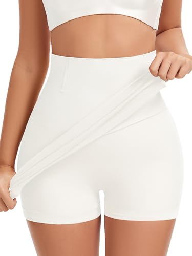 SLIMBELLE Underkjol för kvinnor med integrerade byxor magen kontroll stark formande sömlös hög midja formande remklänning 2-i-1 manchesterkjol & shorts kroppsform underkläder, Vit, S