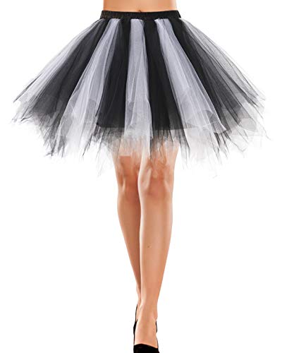 bbonlinedress Dam kort vintage underkjol balett bubbelkjol 50-tal puffig tutu, Black-white, S