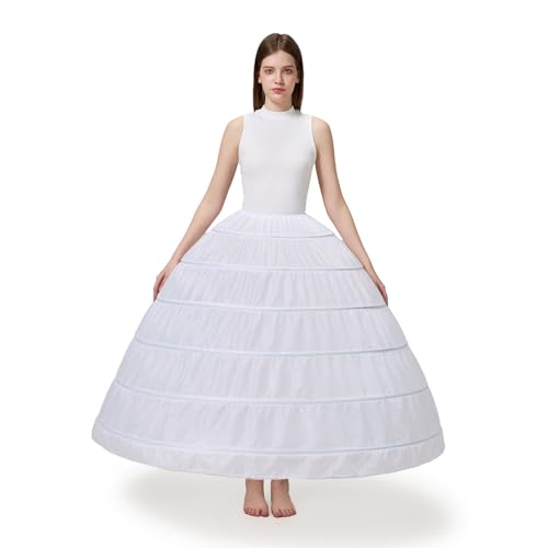 Aprildress kvinnors kupolform 6 ringar underkjol golvlängd underkjol slip krinolin för balklänning bröllopsklänning PPT360-WH vit, Vitt, one size