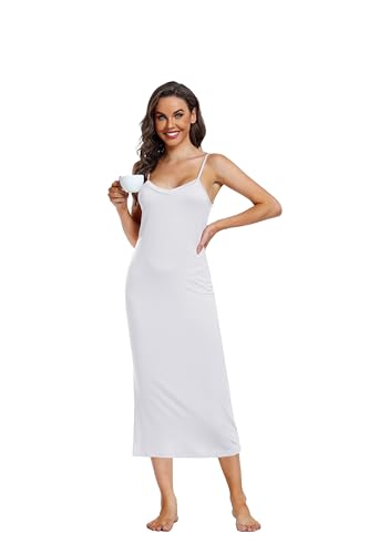 Sopesil Dam hel underklänning mjukt långt nattlinne dra under klänning justerbara spagettiremmar för damer V-hals Negligé UK 6-24, A-vit, M