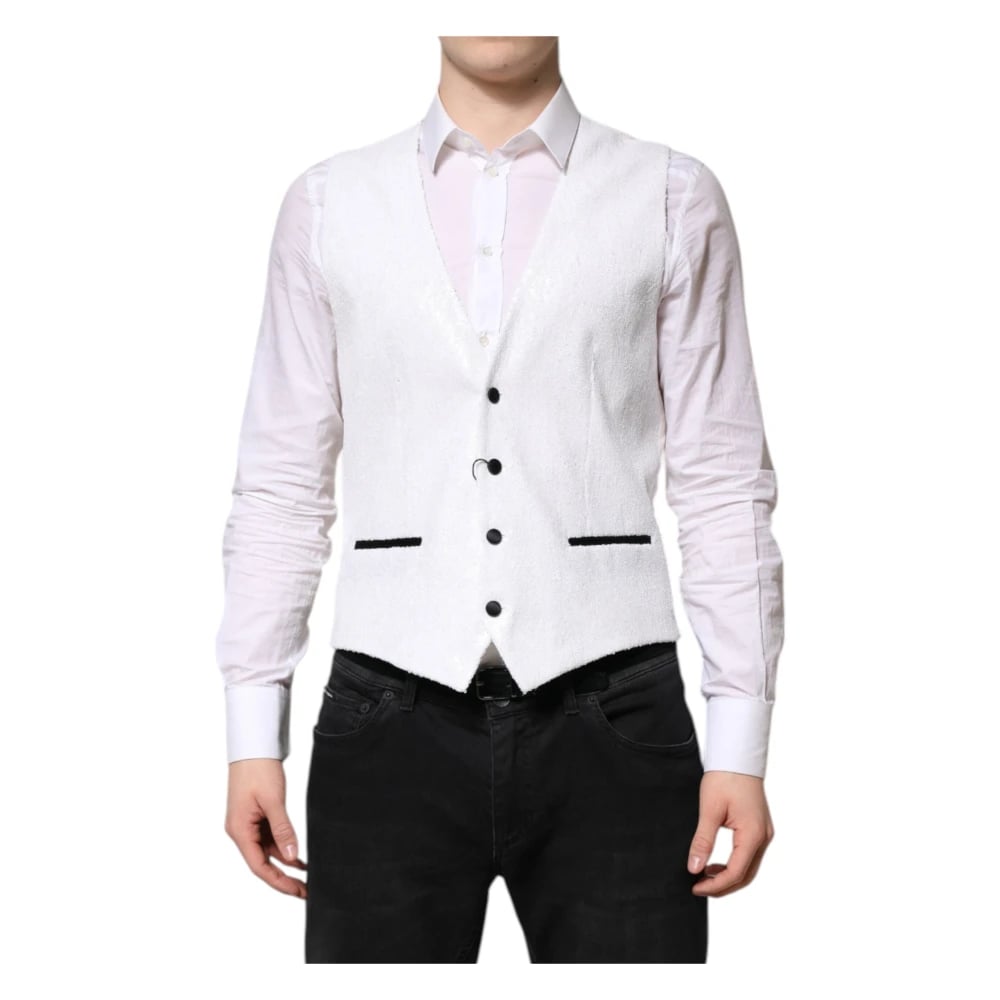 Dolce & Gabbana, Kostymer , Herr, M, Paljetter, Vit Paljetter Formell Klänning Väst