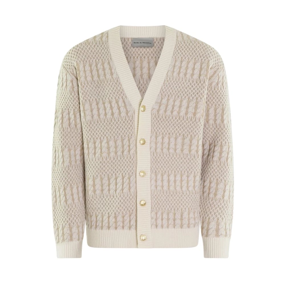 Drole de Monsieur, Stickade Tröjor , Herr, L, Tvåfärgad väst i vit Torsades-stil