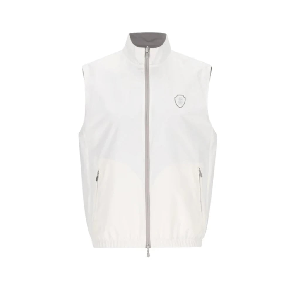 Brunello Cucinelli, Jackor , Herr, M, Nylon, Vit Vändbar Väst med Dragkedjefickor