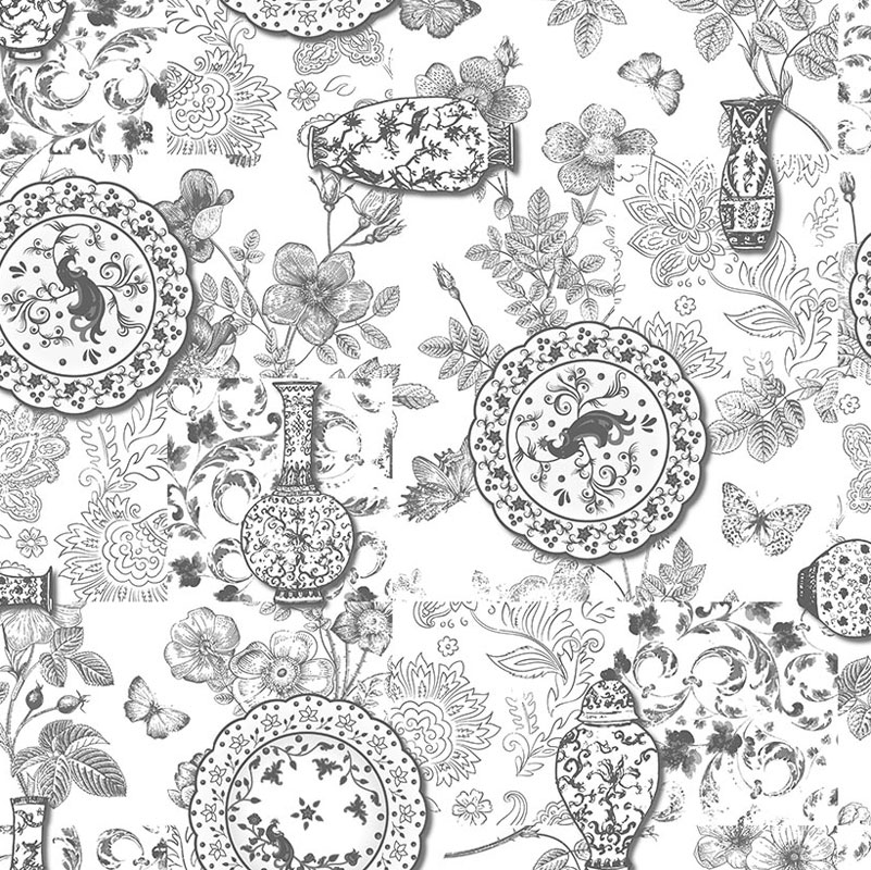 Neşe Porslin Vaxduk Grå/Vit Metervara