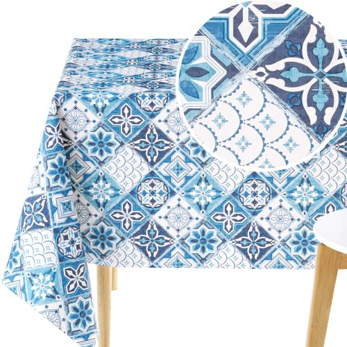 KP HOME Vit PVC bordsduk, avtorkningsbar bordsduk vaxduk i marinblå Porto kakel tryck – rektangulär 200 x 140 cm/78 x 55 i 6 säten bordsduk torkbar vattentät vinyl i Lissabon marockansk mosaik