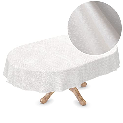 Premium vaxduk bordsduk bordsduk vinyl tvättbar oval 260 x 150 cm prickar vit pärlemor ädel avtorkbar