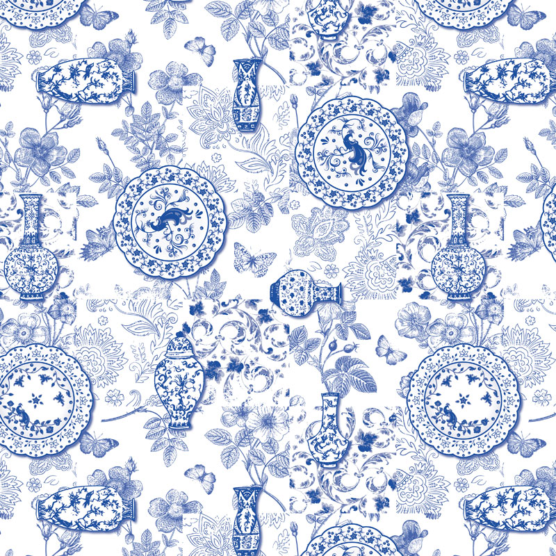 Neşe Porslin Vaxduk Blå/Vit Metervara