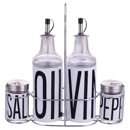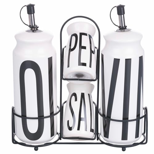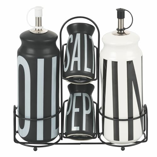 Villa d'Este Home Tivoli Olja vinäger, salt och peppar stengodsset, stativ i rostfritt stål, svart, Bigismore