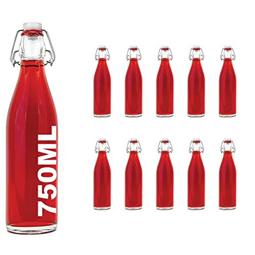 2,4,6 eller 10 x 750 ml strykflaska strykförslutningsflaska tom glasflaska med stängningsförslutning, vinflaska, snapsflaska, vinäger, olja, glasflaskor 0,75 l från slkfactory (10 stycken)