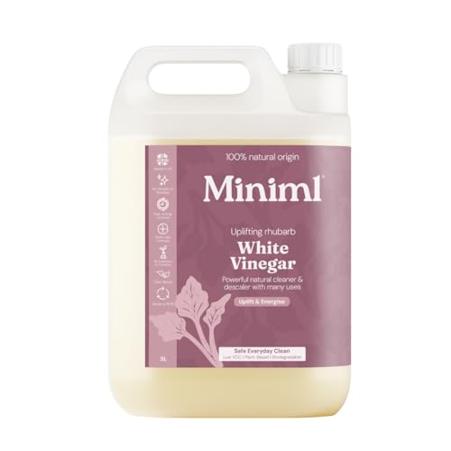 Miniml White Vinäger Rengöring Refill Wild Rabarber Doftande 5 L - Helt naturlig multi-yta och mångsidig rengöringsmedel, kalkborttagare, tvättmjukgörare med mera - 100 procent vegan och grymhetsfri