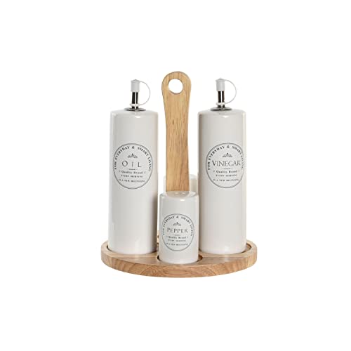 DKD Home Decor Set med märkesolja och vinäger, vit, stengods och trä (15 x 18 x 22 cm)