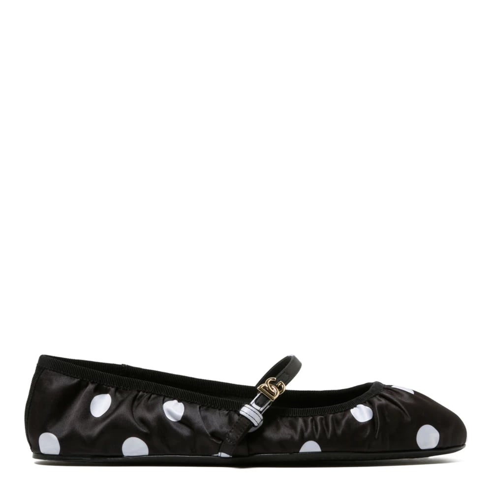 Dolce & Gabbana, Skor , Dam, 40 EU, Läder, Svart & Vit Polka Dot Ballerina