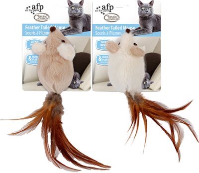 Kattleksak Mus med prasselljud och fjädrar, Vit