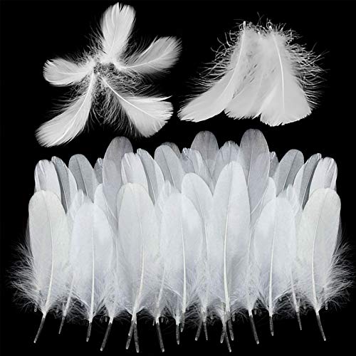 FYSL 300 st vita fjädrar, naturliga hantverk gåsfjädrar, för kostym, väskor, örhängen dekoration, drömfångare, gör-det-själv bröllopsfest dekorationer