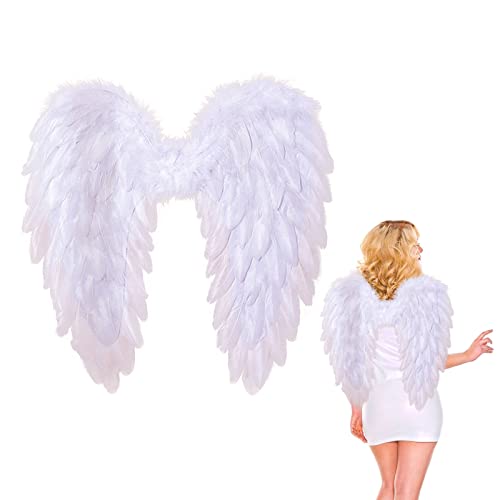 TSHAOUN Vita älva änglavingar vit ängel pyssling vingar fjäder vingar vit ängel kostym kvinnor för halloween fest 45 x 45 vit deluxe riktiga fjädrar. vit, Vitt
