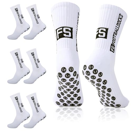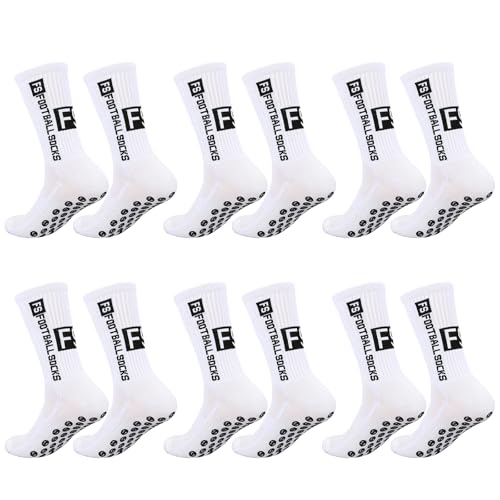 6 par vita fotbollsstrumpor, fotbollshalkfria sportstrumpor, greppstrumpor, halkfria, lukthämmande och svettabsorberande, kan bäras av både män och kvinnor, Vit, 38 EU