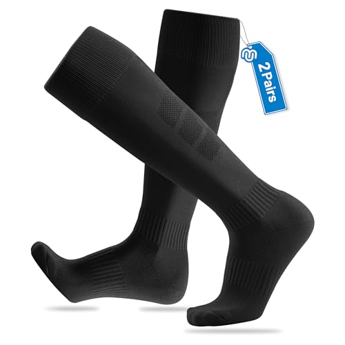 Closemate Fotbollsstrumpor vita svarta 2 par halkfria knähöga sportstrumpor för män kvinnor halkfria absorberande dämpade anti-blåsor atletiska strumpor för fotboll basket vandring hockey löpning,