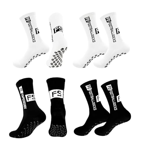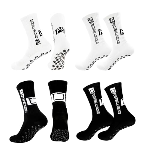 DYMHQ Grip strumpor för män, 4 par, svarta och vita, EU 41–45, halkfria fotbollsstrumpor, medelvad, sport, utomhus, löparstrumpor
