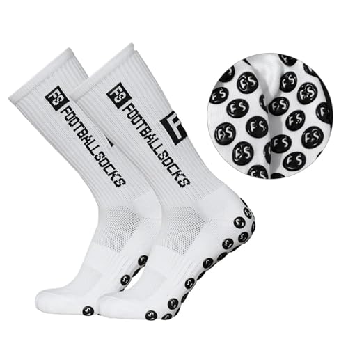 Gummia Fotbollsstrumpor för män kvinnor, sportstrumpor fotboll halkskydd grepp strumpor 39–46 halkfri fotboll basket löpning strumpor, cykling maraton, 1 par vita, 39-46 EU
