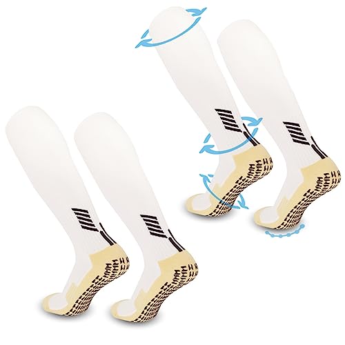 FIBOGOUP Fotbollsstrumpor herr (2 par), fotbollsstrumpor EU 39–44, halkfria fotbollsstrumpor, sportstrumpor för fotboll, löpning, träning, Knästrumpor 2 par vita, 39-44 EU