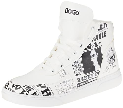 DOGO Dam veganläder vita höga sneakers - Warner Bros Daily Prophet Harry Potter Motif-41, Vitt och blått, 41 EU