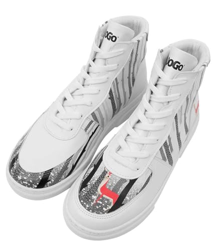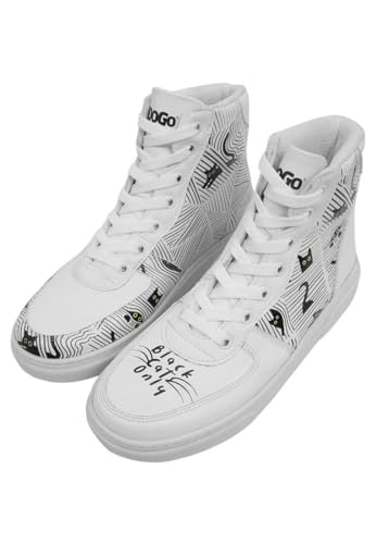 DOGO Kvinnors veganläder vita höga sneakers - There You are Motif-41, Var unik med dessa iögonfallande mönster, 41 EU