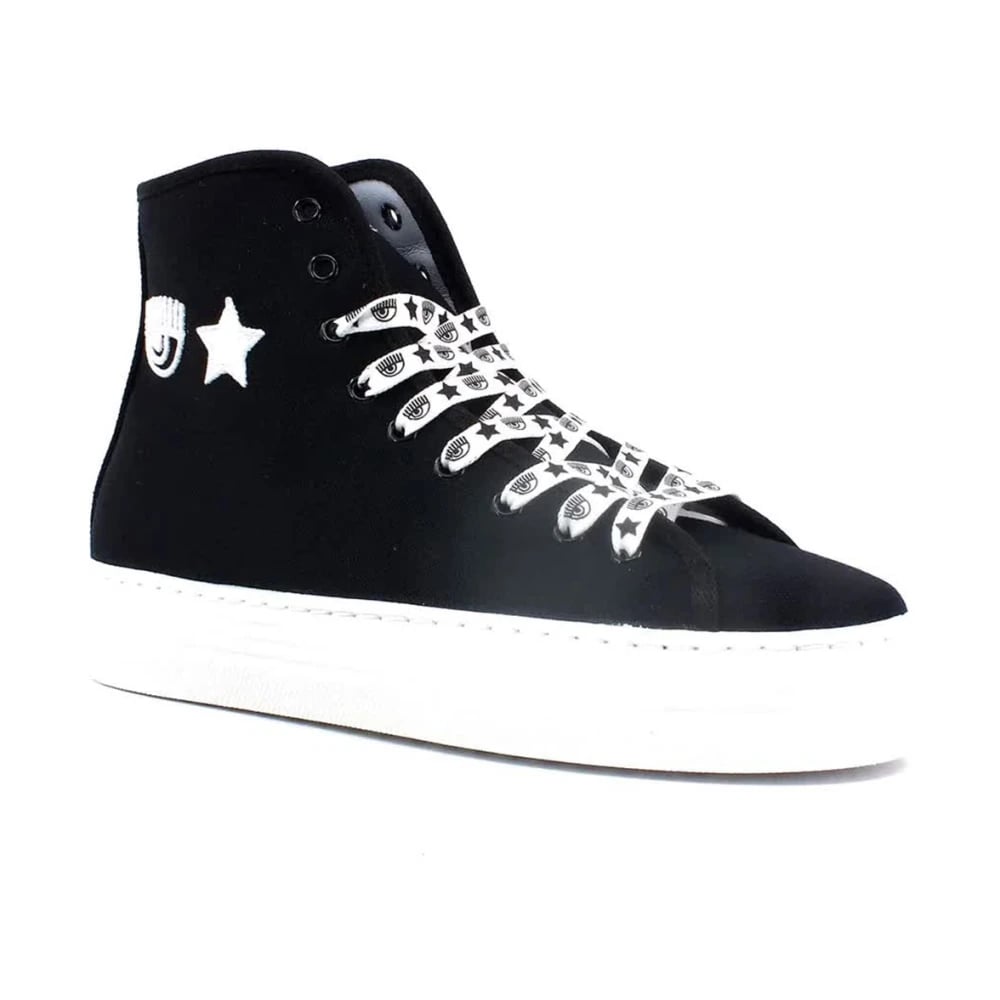 Chiara Ferragni Collection, Skor , Dam, 38 EU, Höga svarta och vita canvas sneakers