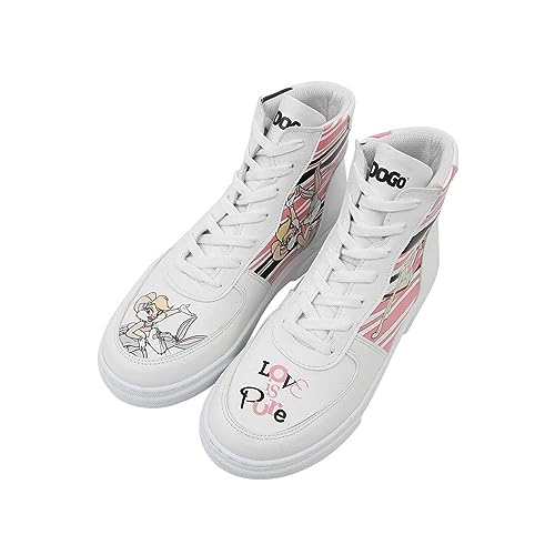 DOGO Kvinnors veganläder vita höga sneakers - Warner Bros Love is Pure Bugs Bunny Motif-37, vit, 37 EU