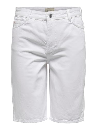 ONLY långa jeansshorts för kvinnor med hög midja och normal passform, Vit, L